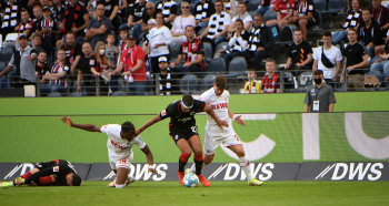 Timothy Chandler (22, Eintracht Frankfurt), Filip Kostić (10, Eintracht Frankfurt) gegen Dejan Ljubicic (7, Köln)
