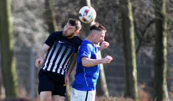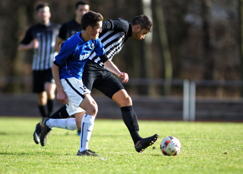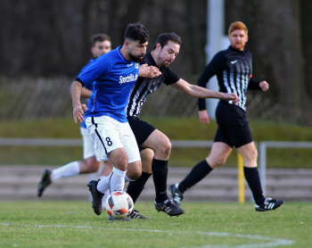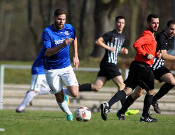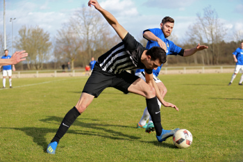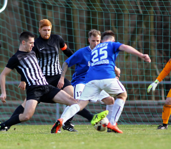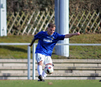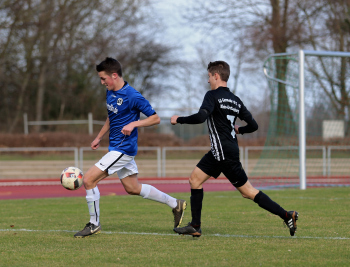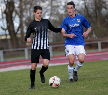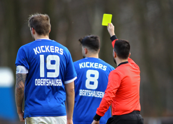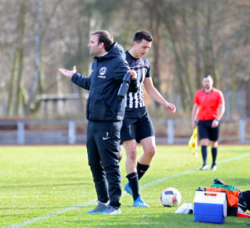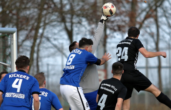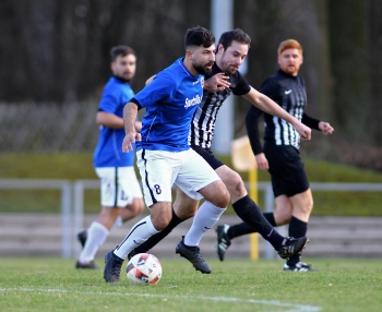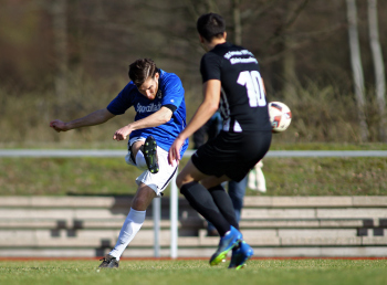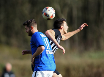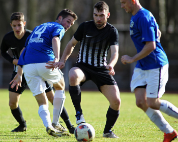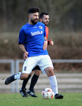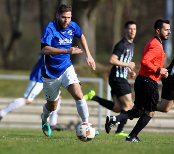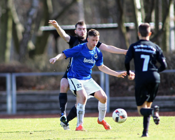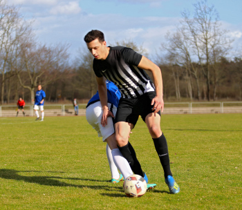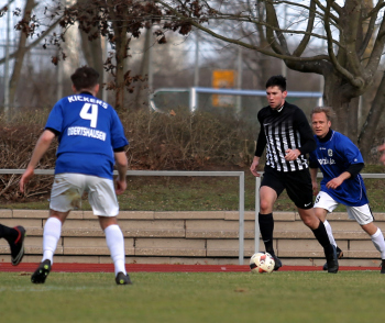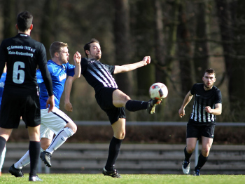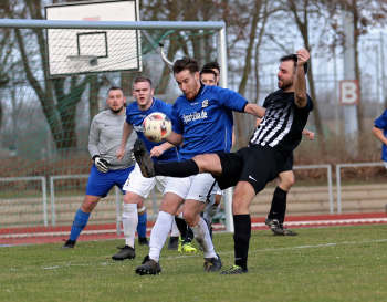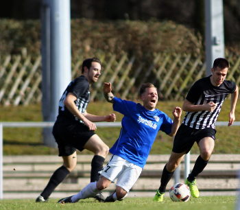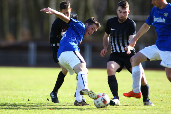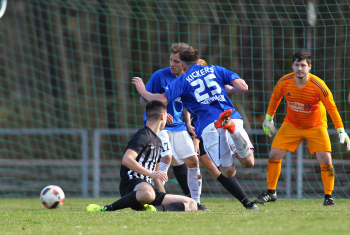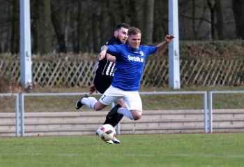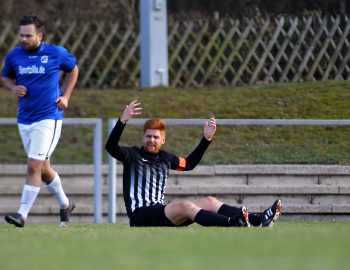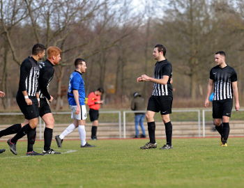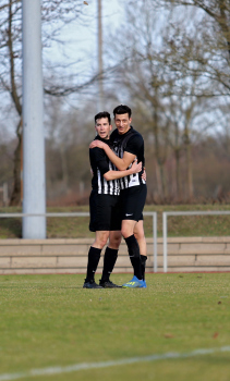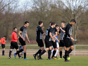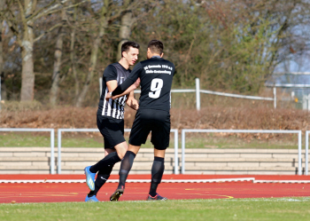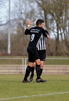 10.03.2019, xxx, Stadion Badstrasse, Obertshausen Gruppenliga Frankfurt Gruppe Ost, Saison 2018/2019, Kickers Obertshausen - Germania Klein-Krotzenburg, Tor zum 0:2 durch Andre Scheel (Germania Klein-Krotzenburg), Jubel mit Tim Zeiger Kapitaen (Germania Klein-Krotzenburg), Francesco Zocco (Germania Klein-Krotzenburg),