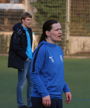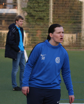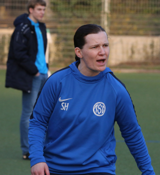 08.04.2019, xmgoodx Neu-Isenburg Frauen Hessenliga Saison 2018/2019 TSG Neu-ISenburg gegen SF/BG Marburg Trainerin Simone Hartmann (TSG) ****** Foto: Peter Hartenfelser