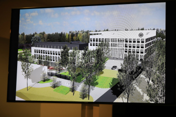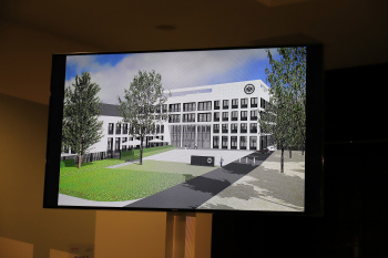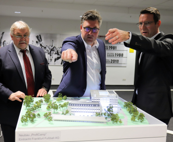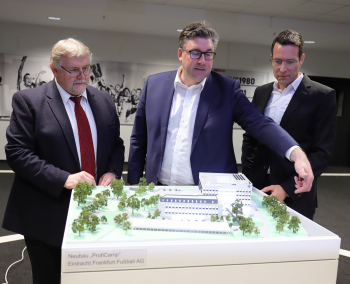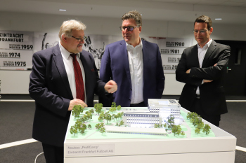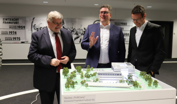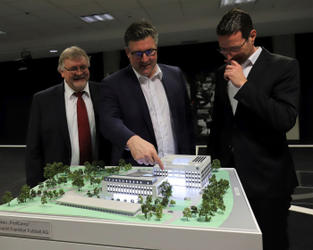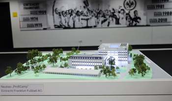 Modell des Neubaus der Gschäftstelle und des ProfiCamps von Eintracht Frankfurt