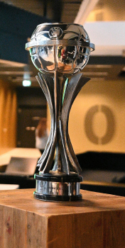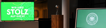 04.12.2023 Frankfurtam Main, DFB-Campus Empfang der U17-Weltmeister_Nationalmanschaft Der DFB ist stolz auf seine U17-Weltmeister Bild zeigt den Pokal ********* Foto: Peter Hartenfelser