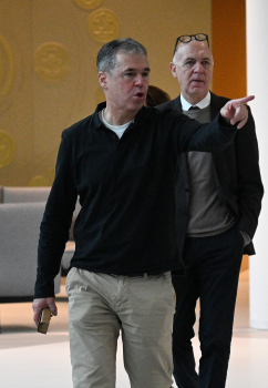 04.12.2023 Frankfurtam Main, DFB-Campus Empfang der U17-Weltmeister_Nationalmanschaft Der DFB ist stolz auf seine U17-Weltmeister Bild zeigt Andreas Rettig Geschäftsführer Sport des DFB dahinter DFB-Präsident Bernd Neuendorf ********* Foto: Peter Hartenfelser
