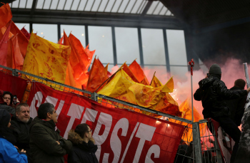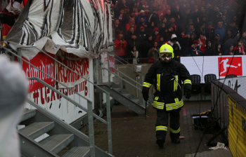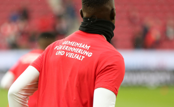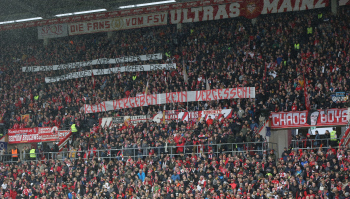 Spruchbaender, Choreografie von Fans von Mainz 05, Auschwitz, Erinnerungstag im deutschen Fussball, nie wieder