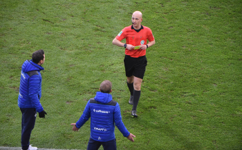 am Boden, Khaled Narey (HSV) dikutiert mit dem Schiedsrichter Nicolas Winter