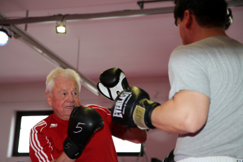 Horst Gauß ist seit 1966 Boxtrainer stellt sein zweites Buch "Aus Liebe zum Boxsport - Erinnerungen an die Grosse Zeit des CSC" im Boxring des Challenges Clubs in Sachsenhausen vor
