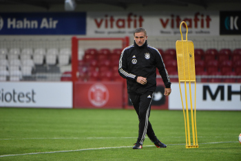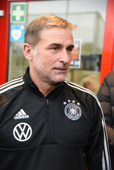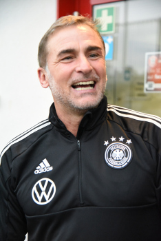 07.10.2019 Dreieich Qualifikation für die U 21-Europameisterschaft 2021 DFB deutsche U 21-Nationalmannschaft Training Trainer Stefan Kuntz beim Torwarttraining ********* Foto: Peter Hartenfelser