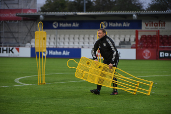 07.10.2019 Dreieich Qualifikation für die U 21-Europameisterschaft 2021 DFB deutsche U 21-Nationalmannschaft Training Trainer Stefan Kuntz packt selbst mit an ********* Foto: Peter Hartenfelser