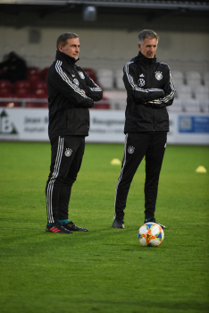 07.10.2019 Dreieich Qualifikation für die U 21-Europameisterschaft 2021 DFB deutsche U 21-Nationalmannschaft Training Trainer Stefan Kuntz , Axel Busenkell, Co-Trainer Antonio Di Salvo ********* Foto: Peter Hartenfelser