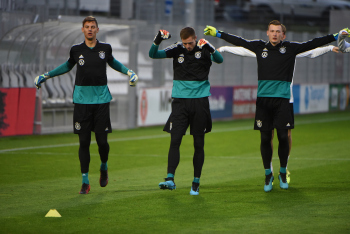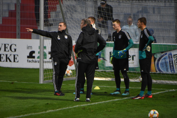 07.10.2019 Dreieich Qualifikation für die U 21-Europameisterschaft 2021 DFB deutsche U 21-Nationalmannschaft Training Torwart Eike Bansen, Torwart Lennart Grill, Torwart Markus Schubert ********* Foto: Peter Hartenfelser
