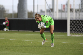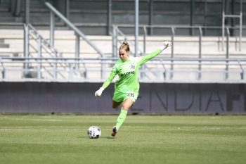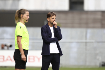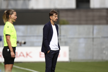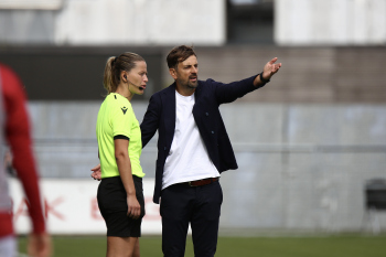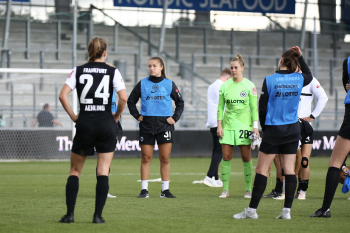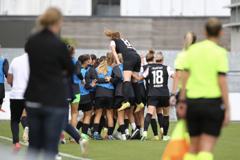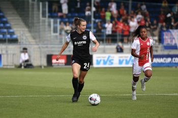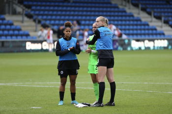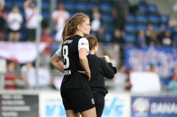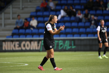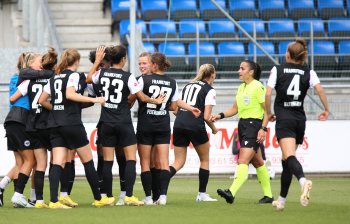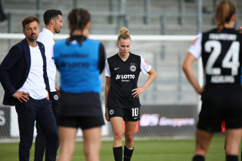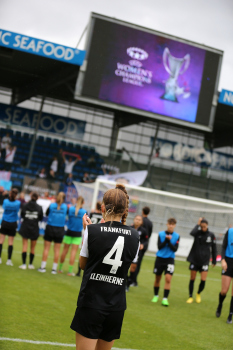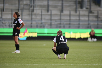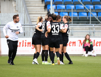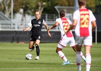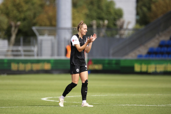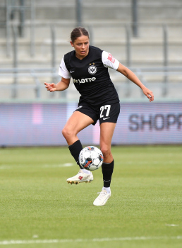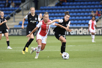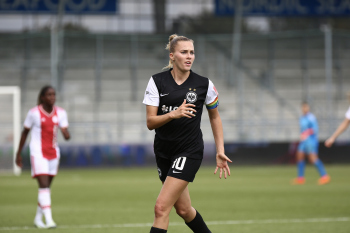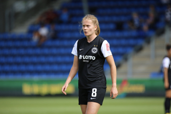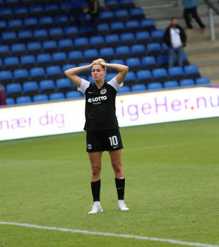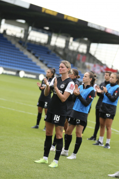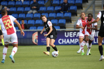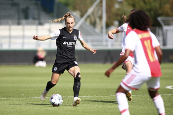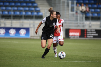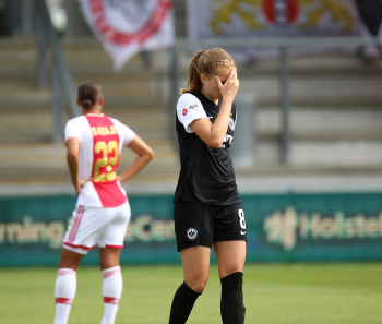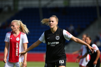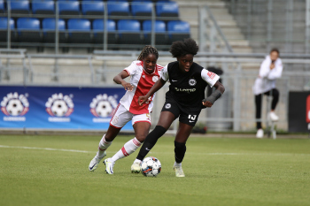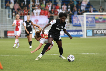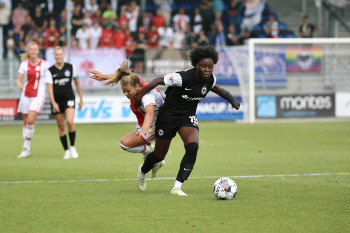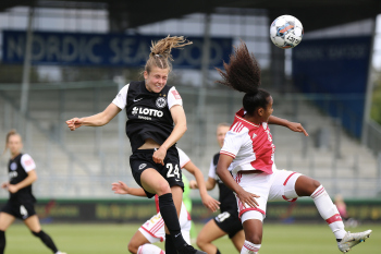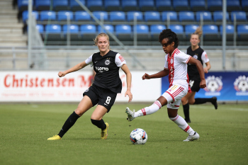 Sjoeke Nüsken (8, Eintracht Frankfurt Frauen), Barbara Dunst (28, Eintracht Frankfurt Frauen) gegen Victoria Pelova (23, Ajax)