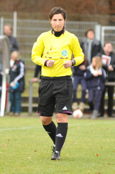 Schiedsrichter Katrin RAFALSKI (Bad Zwesten). Deutschland, St. Leon-Rot: Fussball, DFB-Pokal Frauen Viertelfinale: TSG 1899 Hoffenheim vs FC Bayern München am 15.12.2012, Ensinger Stadion. *** Quelle: Hartenfelser, hoehere Aufloesung auf Anfrage, Verwendung honorarpflichtig, Belegexemplar erbeten Kontonummer 112051570 BLZ 50550020 Umsatzsteuernummer 04482501147
