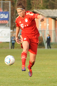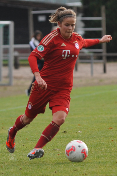 Laura FEIERSINGER (FC Bayern München). Deutschland, St. Leon-Rot: Fussball, DFB-Pokal Frauen Viertelfinale: TSG 1899 Hoffenheim vs FC Bayern München am 15.12.2012, Ensinger Stadion. *** Quelle: Hartenfelser, hoehere Aufloesung auf Anfrage, Verwendung honorarpflichtig, Belegexemplar erbeten Kontonummer 112051570 BLZ 50550020 Umsatzsteuernummer 04482501147