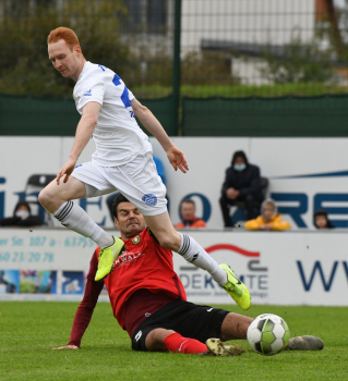 03.10.2020 xstux Alzenau Regionalliga Südwest, Saison 2020/2021 FC Bayern Alzenau - SG Sonnenhof Großaspach v.l. Andreas Ivan (Großaspach), Marco Ferukoski (Alzenau) *** Foto: Peter Hartenfelser
