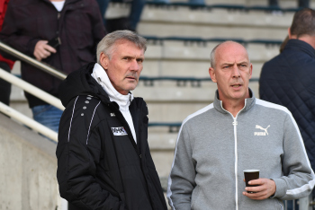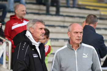 04.11.2017 Neu-Isenburg, Sportpark Fussball LOTTO Hessenliga Saison 2017/2018 SG Rotweiss Frankfurt gegen Hessen Dreieich Trainer Rudi Bommer (Hessen Dreieich) und Mario Basler (RW Frankfurt) *** Foto: A2/Hartenfelser