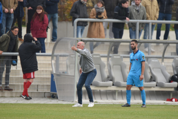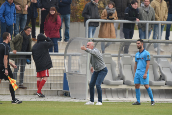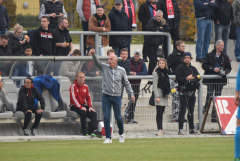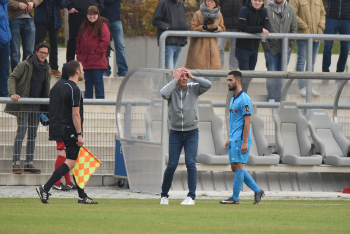 04.11.2017 Neu-Isenburg, Sportpark Fussball LOTTO Hessenliga Saison 2017/2018 SG Rotweiss Frankfurt gegen Hessen Dreieich Trainer Mario Basler (RW Frankfurt) tobt an der Seitenlinie *** Foto: A2/Hartenfelser