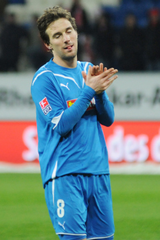 Nikolce Noveski (links), Vedad Ibisevic (mitte), B0 Svensson (rechts), Eugen Polanski (ganz rechts)