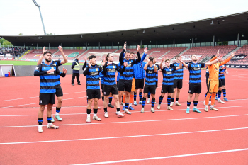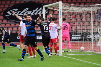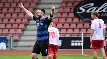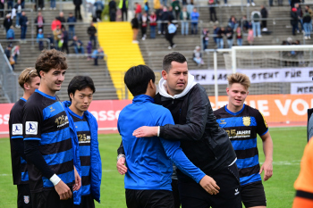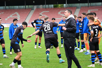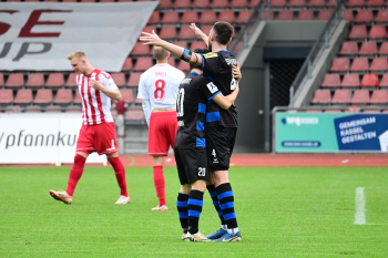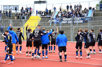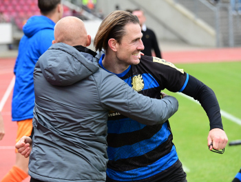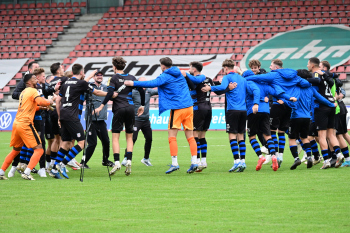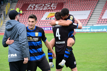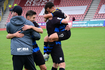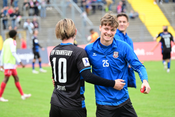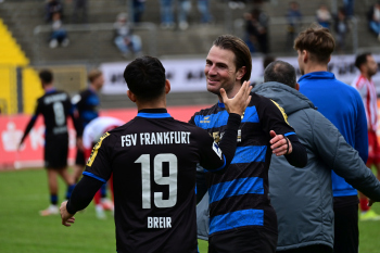 Torjubel durch Kapitän Tim Weissmann (4, FSV Frankfurt) nach dem Tor zum 0:1 durch Lucas Hermes (27, FSV Frankfurt)
