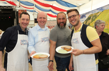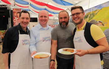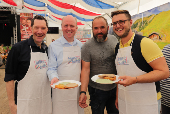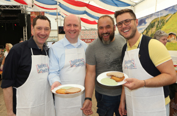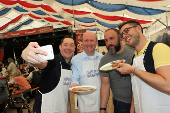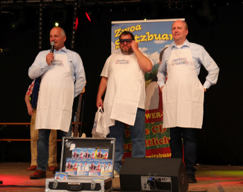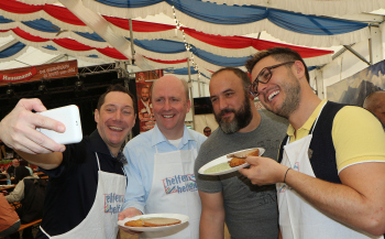 Fersehkoch Mirko Reeh, Frankfurts Bürgermeister Uwe Becker, Denis Hausmann, Patrick Hausmann