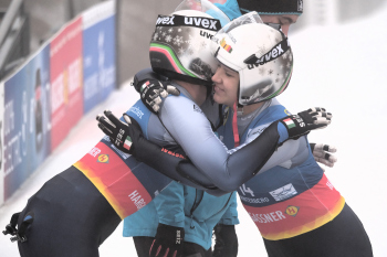 06.01.2023 xkhx Winterberg, Veltins Eis Arena Eberspächer Rennrodel Weltcup 2024 Rodeln DOPPELSITZER DAMEN Doppelsitzer 2. Platz Voetter, Andrea und Marion Oberhofer (ITA)