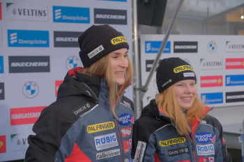 06.01.2023 xkhx Winterberg, Veltins Eis Arena Eberspächer Rennrodel Weltcup 2024 Rodeln DOPPELSITZER DAMEN Doppelsitzer Siegerinnen, Jessica Degenhardt, Cheyenne Rosenthal Bild zeigt Jessica Degenhardt,
