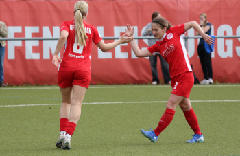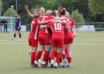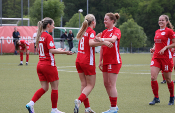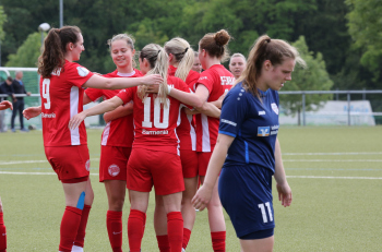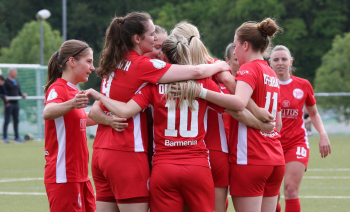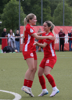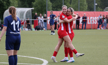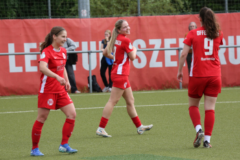 Torjubel nach dem 3:0 durch Leonie Gosch (8, OFC Frauen) hier mit Franziska Marie Riepl (3, OFC Frauen) und Adelina Zekaj (9, OFC Frauen)