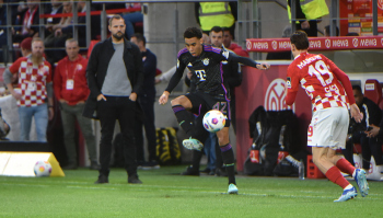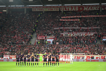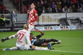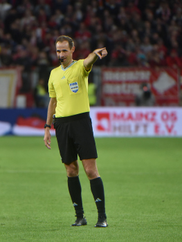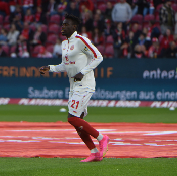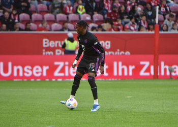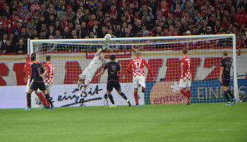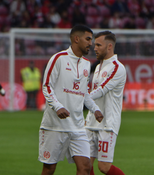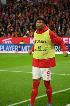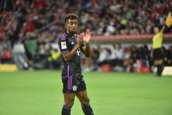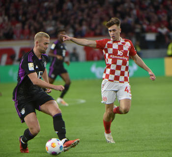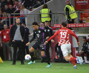 Kingsley Coman (11, FCB), Torwart Robin Zentner (27, FSV Mainz 05)