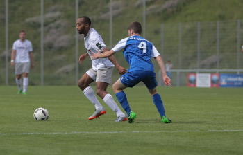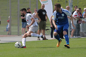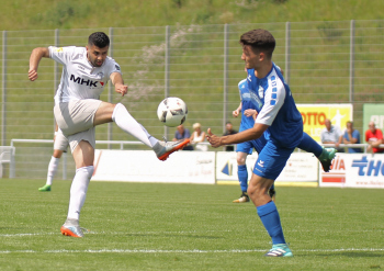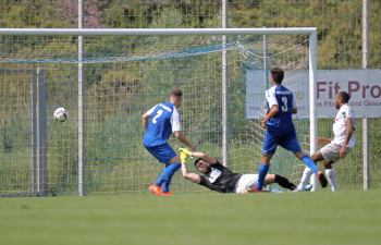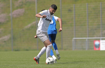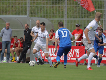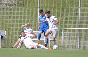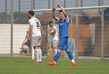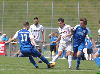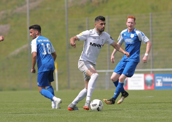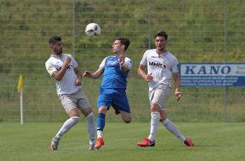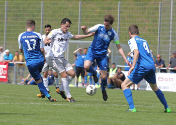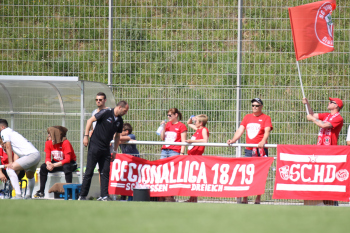 26.05.2018, xxx, Fussball, Sportpark an der IGS Mainspitz, Lotto Hessenliga, Ginsheim; VfB Ginsheim - SC Hessen Dreieich, v.l. Rudi Bommer Trainer (SC Hessen Dreieich), Ralf Weber Co-Trainer (SC Hessen Dreieich), Joern Merten Kohl (SC Hessen Dreieich), Tino Lagator (SC Hessen Dreieich), Kamil Kwiaton (VfB Ginsheim 1916),