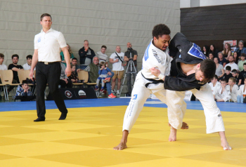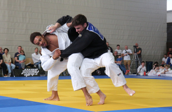 27.04.2024 xmgoodx Offenbach Judo Bundesliga JC Samurai – TSV Abensberg Athanasios Mylonelis (Samurai) gegen Peter Thomas (TSV Abensberg) ***** Foto: A2Bildagentur Hartenfelser