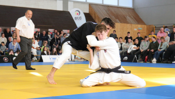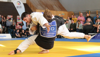 27.04.2024 xmgoodx Offenbach Judo Bundesliga JC Samurai – TSV Abensberg Athanasios Mylonelis (Samurai) gegen Lukas Ohneiser (TSV Abensberg) ***** Foto: A2Bildagentur Hartenfelser