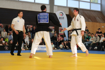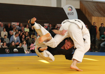 27.04.2024 xmgoodx Offenbach Judo Bundesliga JC Samurai – TSV Abensberg Mikheil Japaridze (Samurai) gegen Falk Petersilka (TSV Abensberg) ***** Foto: A2Bildagentur Hartenfelser
