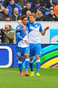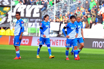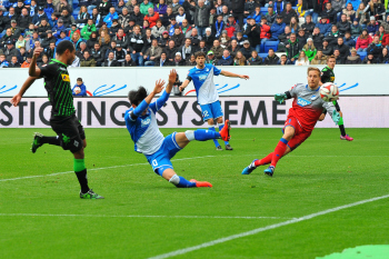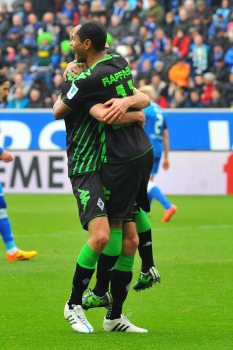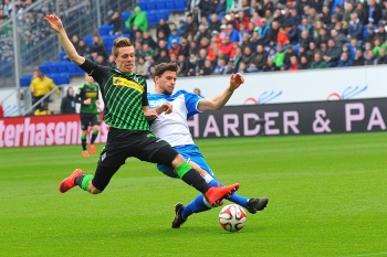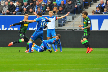 Deutschland, Sinsheim: Fussball, Bundesliga: TSG 1899 Hoffenheim vs. VfL Borussia Moenchengladbach am 04.04.2015, Rhein-Neckar-Arena .