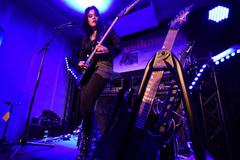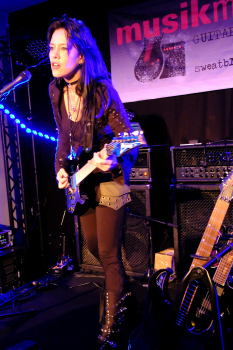 12.04.2018 xkhx Frankfurt am Main, Messe Musikmesse 2018 - Guitar Camp Jen Majura (Evanescence) Gitarristin / Sängerin / Bassistin / Komponistin *** Foto: Peter Hartenfelser