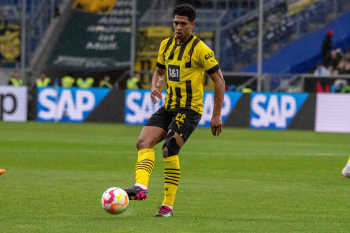 Dortmunder Torjubel, Jude Bellingham, Jamie J. Bynoe-Gittens, Niklas Süle, Torschütze Julian Brandt, Nico Schlotterbeck, Sebastian Haller und Emre Can (Borussia Dortmund).