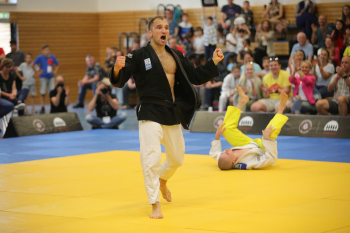 Siegjubel Seifert hier mit Francesco Liotta Cheftrainer der Bundesligamannschaft & Präsident des Samurai Offenbach.