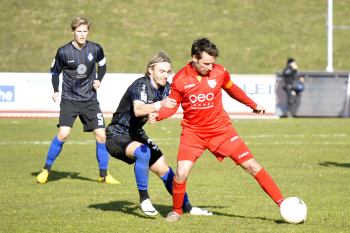 Tolga Ulusoy (Baunatal) gegen Alami Saifeddine Bazza (Waldhof)