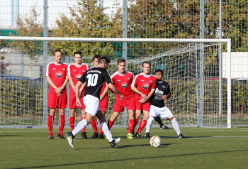 21.10.2018 Neu-Isenburg, Sportpark Kreisliga KLA Saison 2018/2019 TSV Heusenstamm gegen SV Zellhausen Dennis Hibbeler (Heusenstamm) vor der Mauer von Zellhausen ****** Foto: Peter Hartenfelser