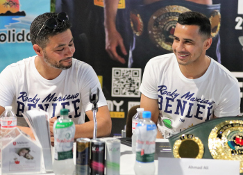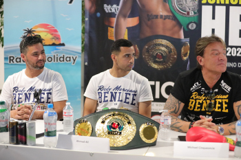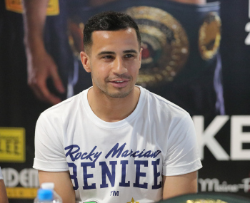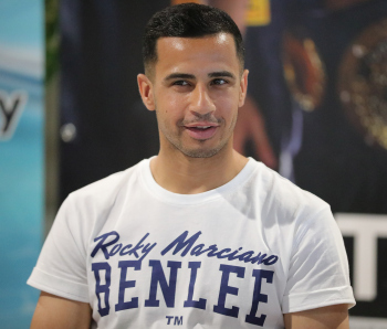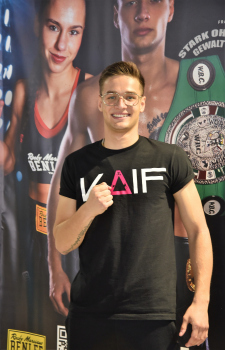 18.05.2022 Offenbach am Main, Heimspiel - Luca ROCKY Cinqueoncie: Junioren Boxweltmeisterschaft WBC/IBF/IBO Pressekonferenz Laszlo Bekö Manager vom Ludwigshafener Boxer "Action" Ahmad Ali freut sich auf den Kampf am Samstag ********* Foto: Peter Hartenfelser