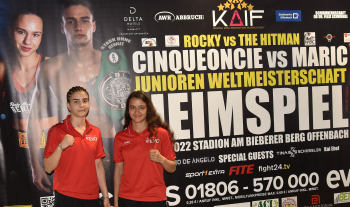 18.05.2022 Offenbach am Main, Heimspiel - Luca ROCKY Cinqueoncie: Junioren Boxweltmeisterschaft WBC/IBF/IBO Pressekonferenz Boxerin Georgiana-Diana Podaru und Boxerin Maria-Elena Avram vom Boxclub-Nordend Offenbach B ********* Foto: Peter Hartenfelser