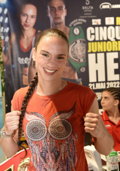 18.05.2022 Offenbach am Main, Heimspiel - Luca ROCKY Cinqueoncie: Junioren Boxweltmeisterschaft WBC/IBF/IBO Pressekonferenz Bild zeigt: GBU-, WBF- und WIBF-Weltmeisterin Sarah Bormann ********* Foto: Peter Hartenfelser