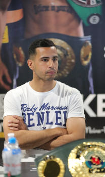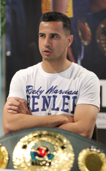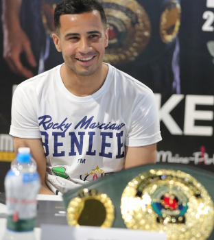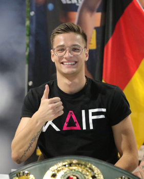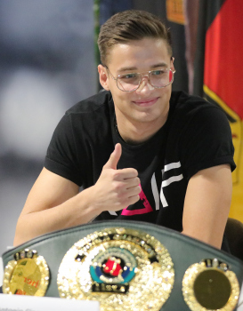 18.05.2022 Offenbach am Main, Heimspiel - Luca ROCKY Cinqueoncie: Junioren Boxweltmeisterschaft WBC/IBF/IBO Pressekonferenz Bild zeigt Junioren Boxweltmeister Luca ROCKY Cinqueoncie ********* Foto: Peter Hartenfelser