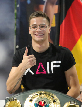 18.05.2022 Offenbach am Main, Heimspiel - Luca ROCKY Cinqueoncie: Junioren Boxweltmeisterschaft WBC/IBF/IBO Pressekonferenz Bild zeigt: Junioren Boxweltmeister Luca ROCKY Cinqueoncie ********* Foto: Peter Hartenfelser