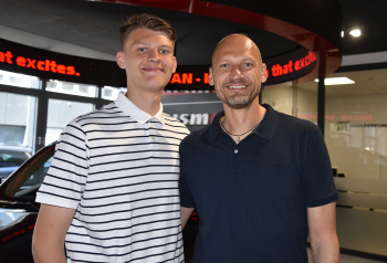 18.05.2022 Offenbach am Main, Heimspiel - Luca ROCKY Cinqueoncie: Junioren Boxweltmeisterschaft WBC/IBF/IBO Pressekonferenz Bild zeigt Junioren Boxweltmeister Luca ROCKY Cinqueoncie mit seinem Vater und Manager Michael Cinqueoncie ********* Foto: Peter Hartenfelser