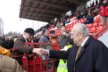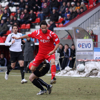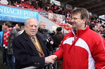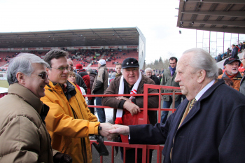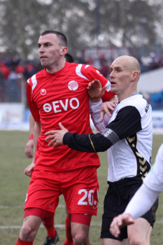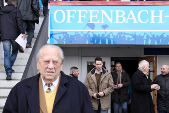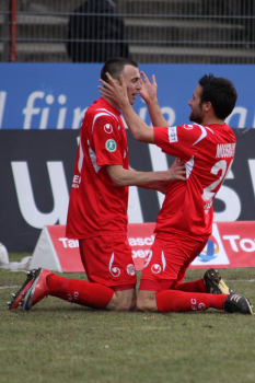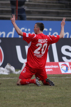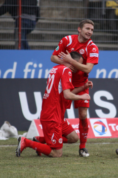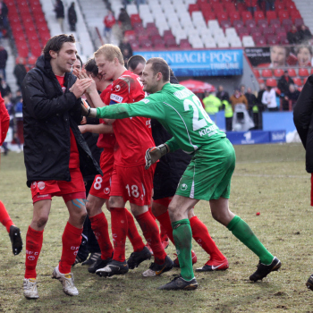 20.02.2010, 3. Liga, 25. Spieltag: Kickers Offenbach vs Wacker Burghausen, Schlussjubel Steffen Haas, Maik Schutzbacjh, Marko Kobilas und Robert Wulnikowsky