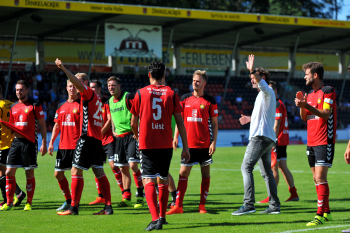 Jeron AL-HAZAIMEH (SC Preussen Muenster), Edisson JORDANOV (SC Preussen Muenster), Lion SCHWEERS (SC Preussen Muenster), Denis MANGAFIC (SC Preussen Muenster) bedanken sich bei Ihren fans.