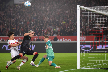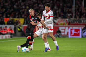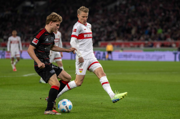 Anthony Rouault (VfB Stuttgart), Tim Skarke (1.FC Union Berlin) und Torwart Alexander Nübel (VfB Stuttgart).