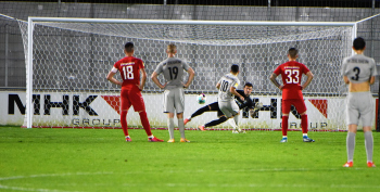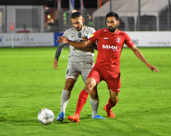 RAFFAEL GRIGORIAN (Zeilsheim) verwandelt den Elfmeter zum 1:1 , Torwart PERO MILETIC (1, Hessen Dreieich) geschlagen