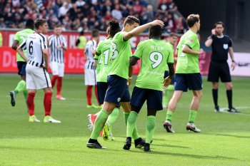 gegen Paul-Georges Ntep (9) VfL Wolfsburg