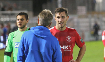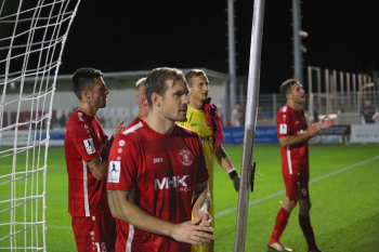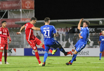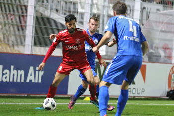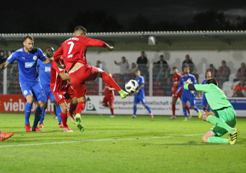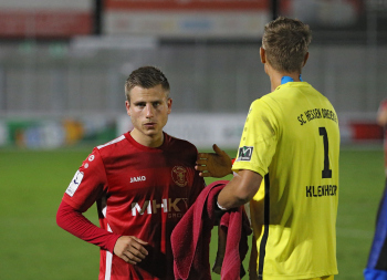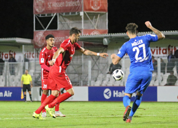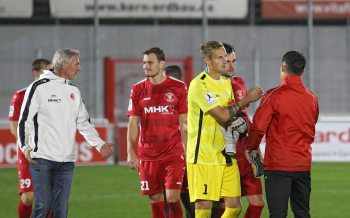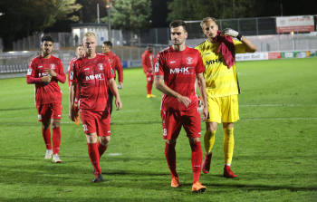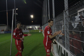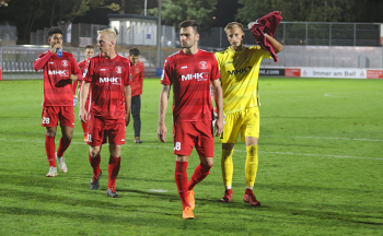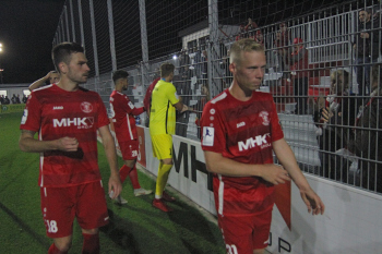 21.09.2018, xxx, Dreieich, Hahnair Sportpark, Regionalliga Suedwest, Saison 2018/2019, SC Hessen Dreieich - Astoria Walldorf vl.: Mannschaft geht zu den Fans Denis Streker (SC Hessen Dreieich), Niko Opper Kapitaen (SC Hessen Dreieich), Pierre Kleinheider Torwart (SC Hessen Dreieich), Kai Hesse (SC Hessen Dreieich),