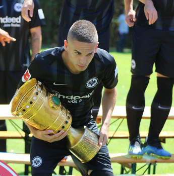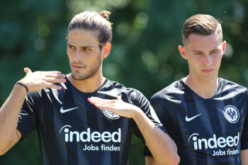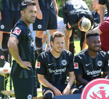 2. Reihe von links nach rechts: Adi Hütter (Chef-Trainer), Christian Peintinger (Co-Trainer), Armin Reutershahn (Co-Trainer), Moppes Petz (Torwarttrainer), Luca Jovic (8), Danny Blum (7), Makoto Hasebe (20), Deji Beyreuther (26), Koichi Kurokawa (Medizinische Abteilung), Patrck Kux (Physiotherapeut), Thomas Stubner (Pysiotherapeut/Osteopath), Maik Liesbrock (Physiotherapeut/ Osteopath).Untere Reihe von links nach rechts: Marco Fabian (10), Nicolai Müller (27), Nelson Mandela Mbouhom (32), Mijat Gacinovic (11), Gelson Fernandes (5), Felix Wiedwald (29), Frederik Rönnow (1), Jan Zimmermann (37), Allan Rodrigues de Souza (28), Jetro Willems (15), Jonathan De Guzmán (6), Marc Stendera (21), Taleb Tawatha (33).