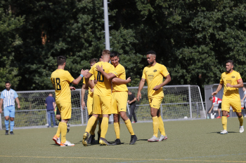 04.08.2019 Neu-Isenburg-Gravenbruch Saison 2019/2020 Glaabsbräu Pokal 1. Runde SSG Gravenbruch gegen TUS Zeppelinheim Torjubel bei den Spieler der SSG Gravenbruch ****** Foto: Peter Hartenfelser